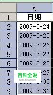 如下图,假如在Excel中存在如下的A列日期格式的数据;