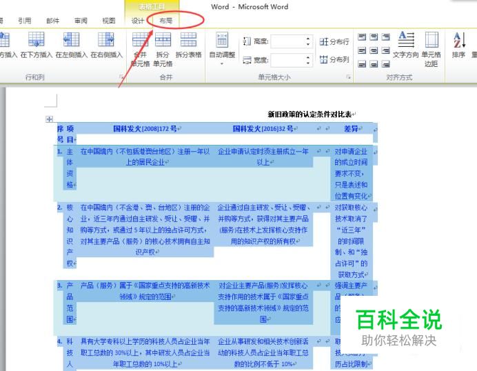 打开word2010,选中我们需要编辑的表格。