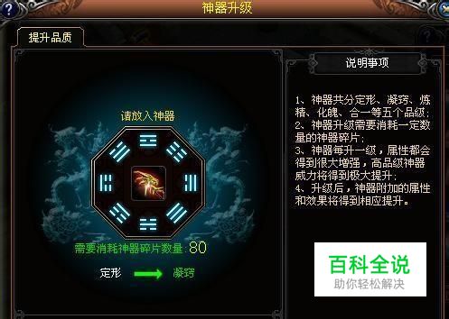 神器可以升级、镶嵌、强化,不能淬洗。下面我们介绍一下神器的升级。