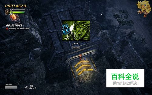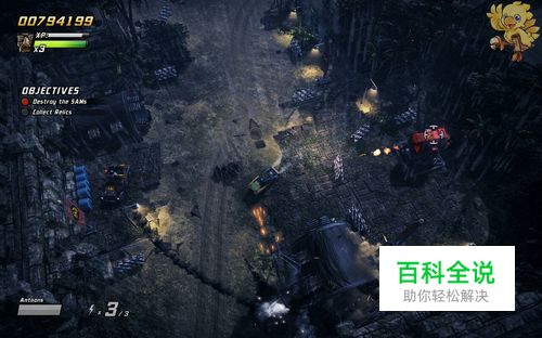 开关关完三次后,会进入动画看见一个飞机过来攻击我们,绕着圈打爆飞机, 结束后进入动画,这时候指挥部让我们去消灭几个防空炮.这时候会出现灰色箭头, 加分的用处很好,沿着红色箭头走,基本都是在一起的.