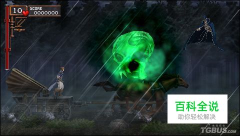 STAGE 0 [PROLOGUE] 一开始主角驾着马车飞驰在林间的小道上,想不到死神却突然出现,这种欢迎仪式还真令人感到意外。死神的攻击方式有两种,一种是投掷旋转的镰刀,一种是发射大骷髅头骨,这里有两种方式可以过去,一是直接上去抽它2鞭子,之后再抽掉它放的大骷髅头,这样死神就会撤退.还有一种更简单,先抽掉它的飞镰,再抽掉它的骷髅头,就过去了。不过怎样选择都没关系,因为到了STAGE-1后血是会自动加满的。