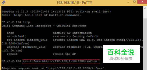 5.输入set-inform http://192.168.1.10:8080/inform将该AP指向UniFi控制器192.168.1.10