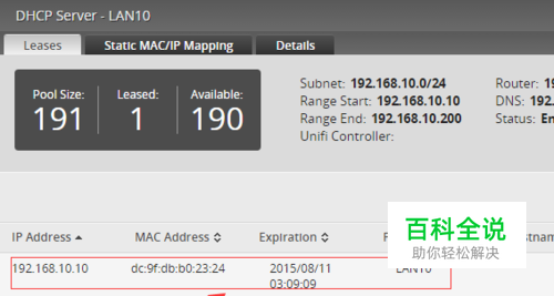 三.UniFi配置1.将UAP1和UAP2分别接入到交换机A的端口6和10,在DHCP服务器上查看对应获得的IP地址