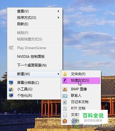 为了将任务栏快速启动中“丢失”的Flip 3D按钮找回来,其实步骤并不复杂,首先我们在桌面空白处点击鼠标右键,并选择新建中的建立快捷方式。 在对象位置中填入路径