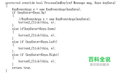 在你当前的Form类中重写“ProcessCmdKey”方法,如下:protected override bool ProcessCmdKey(ref Message msg, Keys keyData)