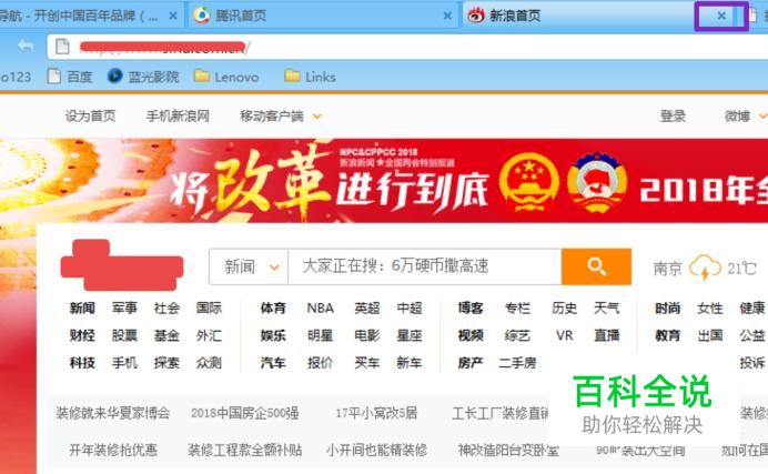 然后我们任意打开几个网页,如图所示; 然后我们把演示将新浪网误关掉,点击上面的关闭按钮;