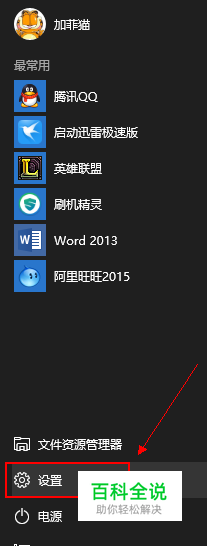 1,鼠标左键点击开始按钮打开Win10开始菜单,然后点击“设置”。