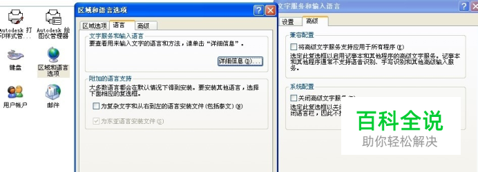 首先打开文字服务 1)单击开始,单击控制面板,然后双击“区域和语言选项”。 2)在语言选项卡上的“文字服务和输入语言”下,单击详细信息。 3)在首选项下,单击语言栏。 4)选择“关闭高级文字服务”复选框,,把里面的钩去掉. 其次设置语言栏的输入法 1)单击开始,单击控制面板,然后双击“区域和语言选项”。 2)在语言选项卡上,在“文字服务和输入语言”下,单击详细信息。 3)在首选项下,单击语言栏。 4)选择“在桌面上显示语言栏”复选框。 如果您安装了文字服务,语言栏将自动显示。但是,如果您关闭了语言栏,您可以使用此步骤重新显示它。如果要将语言栏最小化到任务栏,右击任务栏上的语言图标,然后单击“设置",选择你要用的输入法添加就是了. 任务栏----右击----工具栏---单击“语言栏” 如果任务栏中没语言栏了,就先 开始---运行---输入----ctfmon---确定 如果还没有的话只能从注册表上来修改,单击“开始”,选择“运行”,输入“regedit”打开注册表编辑器,定位到HKEY_CURRENT_USERSoftwareMicrosoft WindowsCurrentVersionRun,然后在右边点击鼠标右键,选择新建—字符串值,在名称里面输入ctfmon.exe,双击ctfmon.exe,输入C:WindowsSystem32ctfmon.exe,重新启动计算机,问题可以解决。 以上几种办法如果还不能解决的话,建议用360修复工具修复下,你打开360 然后找到高级工具----单击----开机启动项管理----找到输入法切换工具----然后点恢复启动OK 。
