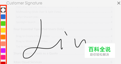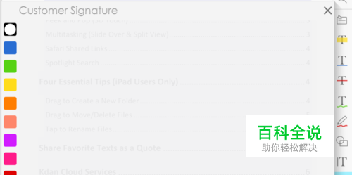 新建签名后,点击“粘贴”,将看到签名出现在文档的当前阅读位置。当然,在粘贴之前,你也可以为你的签名调整颜色或者粗细。