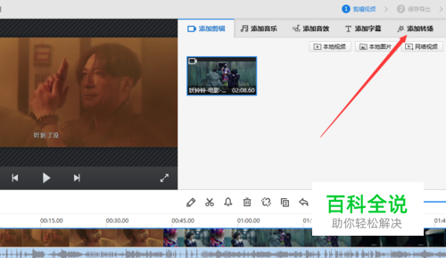 比如说这段视频30秒左右时间段,我需要添加一个转场,那么就把红色标线移动到此处,然后用剪切工具,剪一下。