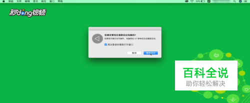 重新启动:点击左上角苹果菜单,选择重新启动,在弹出的对话框中点击重新启动。