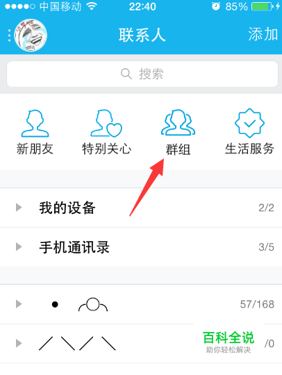 在进入联系人选项界面后,我们点击界面上的“群组”选项。