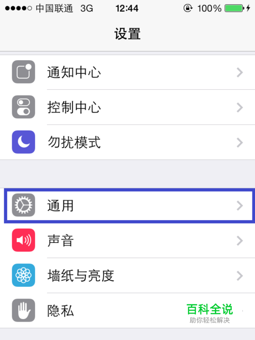 在设置列表中找到 “通用”选项,点击进入,如图所示