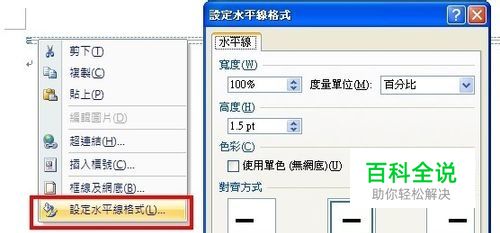 第二步, 这个分隔线不但可以任意改变它的长度,颜色样式也是可以做改变和更改的。而且很简单,请在水平线上按滑鼠右键,并在出现的功能表中选择「设定水平线格式」,接着就可以很轻松地在这里调整它的颜色、和对齐方式了!