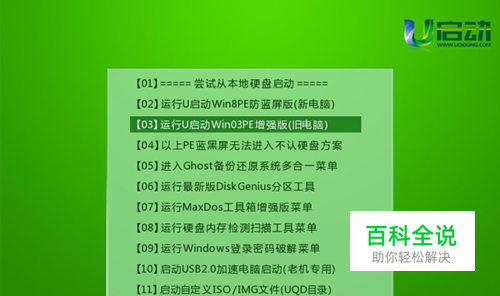 通常我们进入到u启动主菜单界面后都会选择一个pe系统进入(win03pe和win8pe两种),假设当前我们选择win03pe系统,如下图所示: