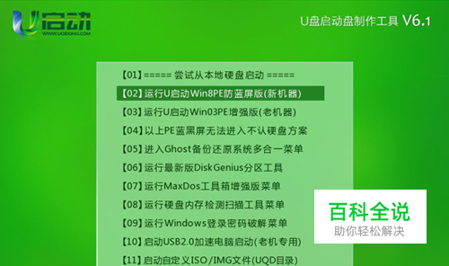 把u启动u盘启动盘插在电脑usb接口上,然后重启电脑,在出现开机画面时用一键u盘启动快捷键的方法进入到u启动主菜单界面,选择【02】运行u启动win8pe防蓝屏选项,按回车键执行,如下图所示: