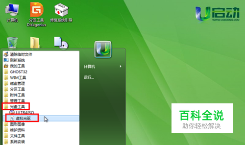 然后点击屏幕左下角windows图标——光盘工具——虚拟光驱,如下图所示: