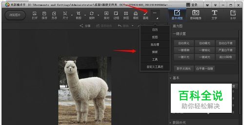 打开光影魔术手软件,单击[浏览图片]按钮,找到要处理的照片,这里我用一张羊驼的图片来演示
