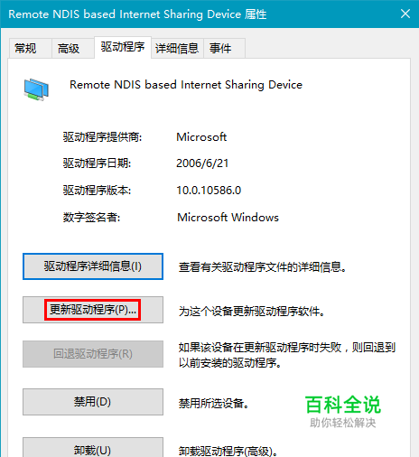 打开网络适配器的属性,点击“更新驱动程序”,如下图