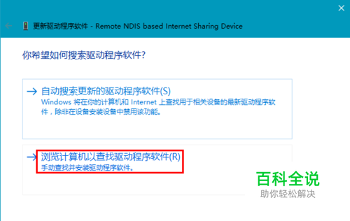 在“你希望如何搜索驱动程序软件”对话框中,选择“浏览计算机以查找驱动程序软件”