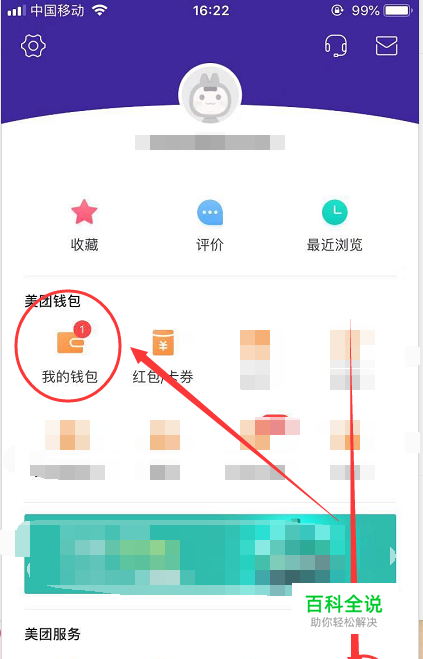 打开手机美团APP,打开 我的页面,然后打开 我的钱包,如下图