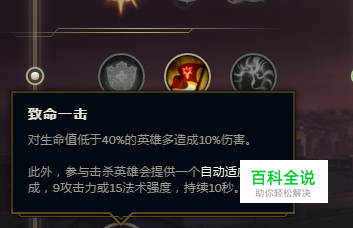 最后带的是致命一击来增加对低血量英雄的伤害。