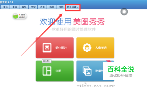 首先,打开美图秀秀这个软件,打开之后,点击最上方的选项。