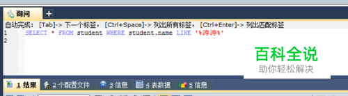 模糊查询 SELECT * FROM student WHERE student.name LIKE '%涛涛%'