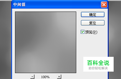 执行 滤镜-杂色-中间值 数值参考下图。增加杂色是为了让图层1云彩效果出现模糊并有质感,杂色滤镜就是为了突显质感而存在的。数值设置越大,增加的杂色就会越多,中间值是的平均模糊效果一样。