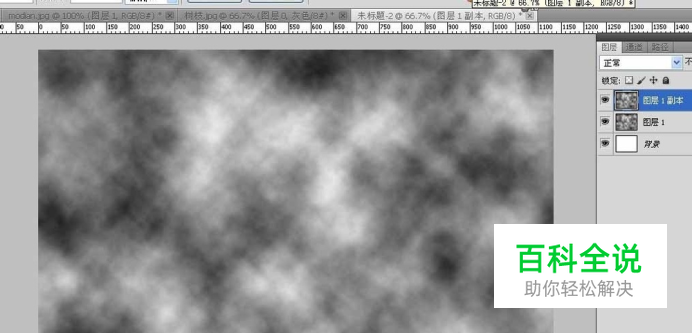 创建好画之后,先新建图层1,接着执行滤镜效果:滤镜-渲染-云彩,云彩效果是把当前前景色与背景色随机组合成云彩效果,如果做蓝天白云就是用前景为天蓝色背景为白色做出来的,按ctrl+F可以进行多次随机处理云彩效果。这里是前景为黑色背景为白色。