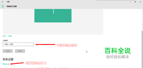 接下来看图,各标明了其作用。要想了解“高级显示设置”,请点击下一步。