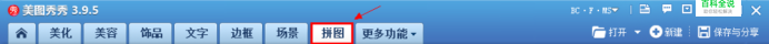首先运行"美图秀秀"软件,然后点击上方的“拼图”。 (嗯。。我这里的是美图秀秀3.9.5,不知道大家的一样不)