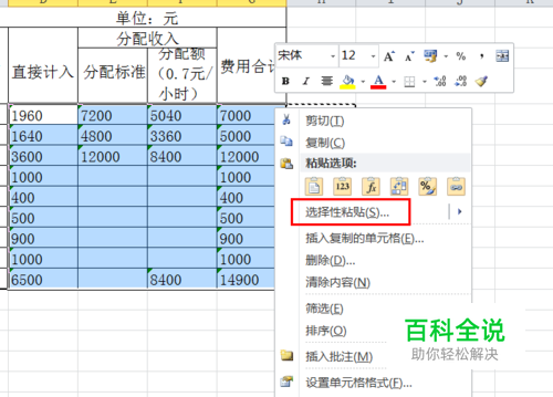 选中进行数据转换的单元格区域,点击右键,在快捷菜单中选择。