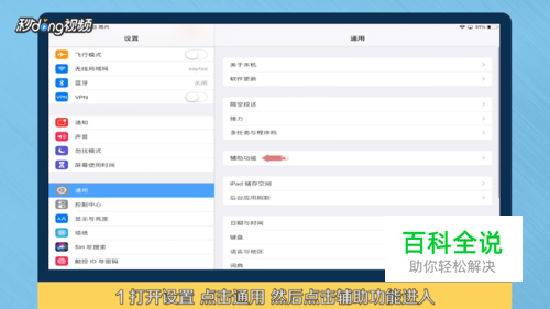 点击“设置”,选择“通用”,点击进入“辅助功能”。