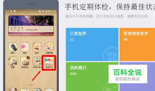 首先,我们需要在手机面板上找到我们的【安全中心】这样我们就可以对下面进行操作了;