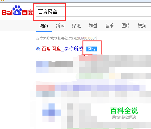 首先,我们在搜索上,输入百度网盘4个字。然后点开带官网标志的网站。