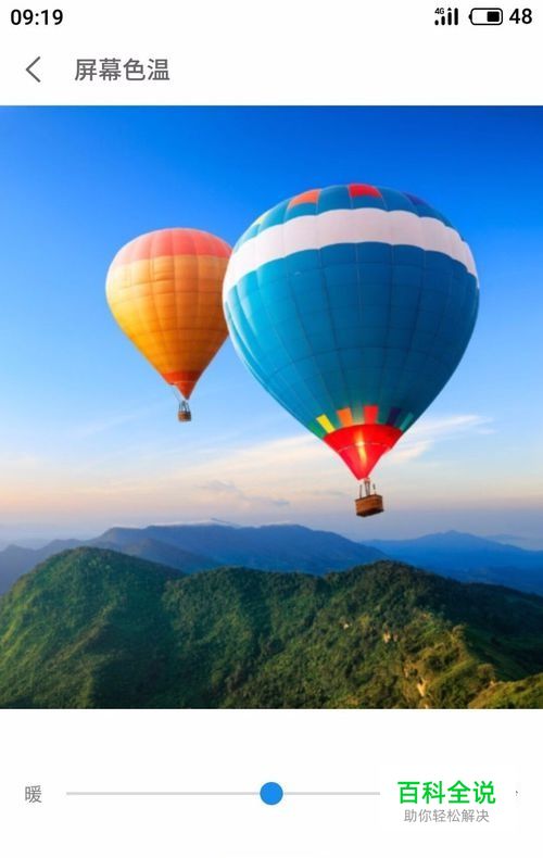 拖动进度条可以根据自己的喜好来调节色温,往右拖动,屏幕的颜色就会变成冷色调。