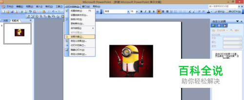 打开powerpoint,点击幻灯片放映菜单下的自定义动画按钮。
