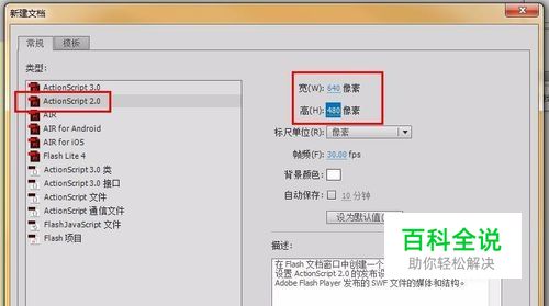 打开FLASH软件,选择AS2文档。