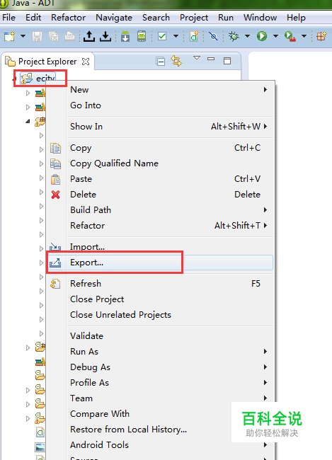 打开自己开发的项目,右键选择export,进入导出向导页面