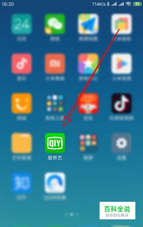 我们在手机上左右的滑动屏幕,找到手机上已安装好的爱奇艺的图标。