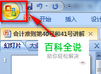 首先,打开要设置的幻灯片文档。点击左上角的【Office按钮】。
