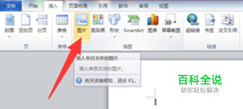 打开word文档,在插入栏目里找到“图片”栏,左键单击,如图所示。