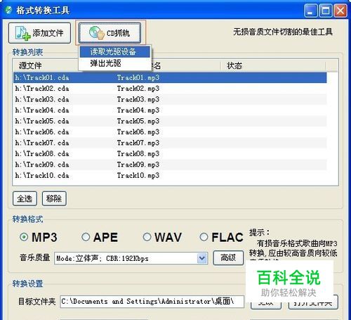开始抓取CD中文件并转换成mp3格式文件,正在进行中。。。稍等。。。