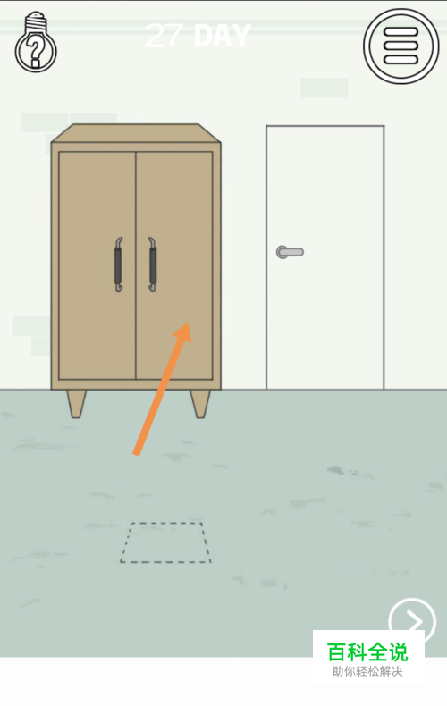 在右边房间里,将梯子拖动到下图中箭头标注的位置就可以过关了。