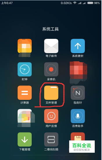 在小米手机桌面上找到文件管理器,如下图所示,点击打开文件管理应用,这个应用对于文件浏览非常方便