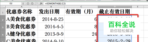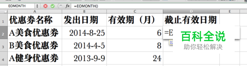 由于优惠券都是在发出日期起的特定几个月的最后一天内使用有效,所以这里应该选择EOMONTH函数。
