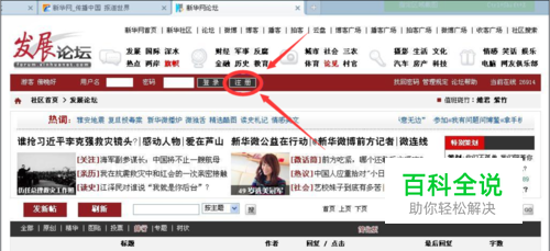 进入新华网首页后,点击论坛链接。