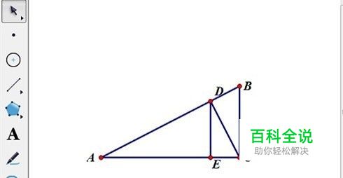 重复步骤2,作过点D垂直于线段AC的垂线,并标记垂足为点E;构造线段DE并隐藏垂线。
