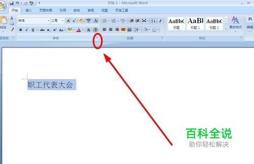 选中输入的内容,找到菜单栏“开始”选项卡下面的“字体”选项组按钮单击
